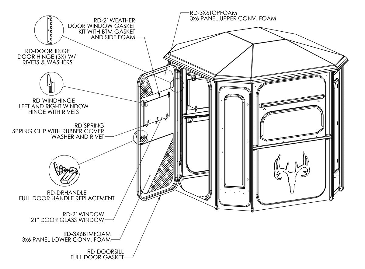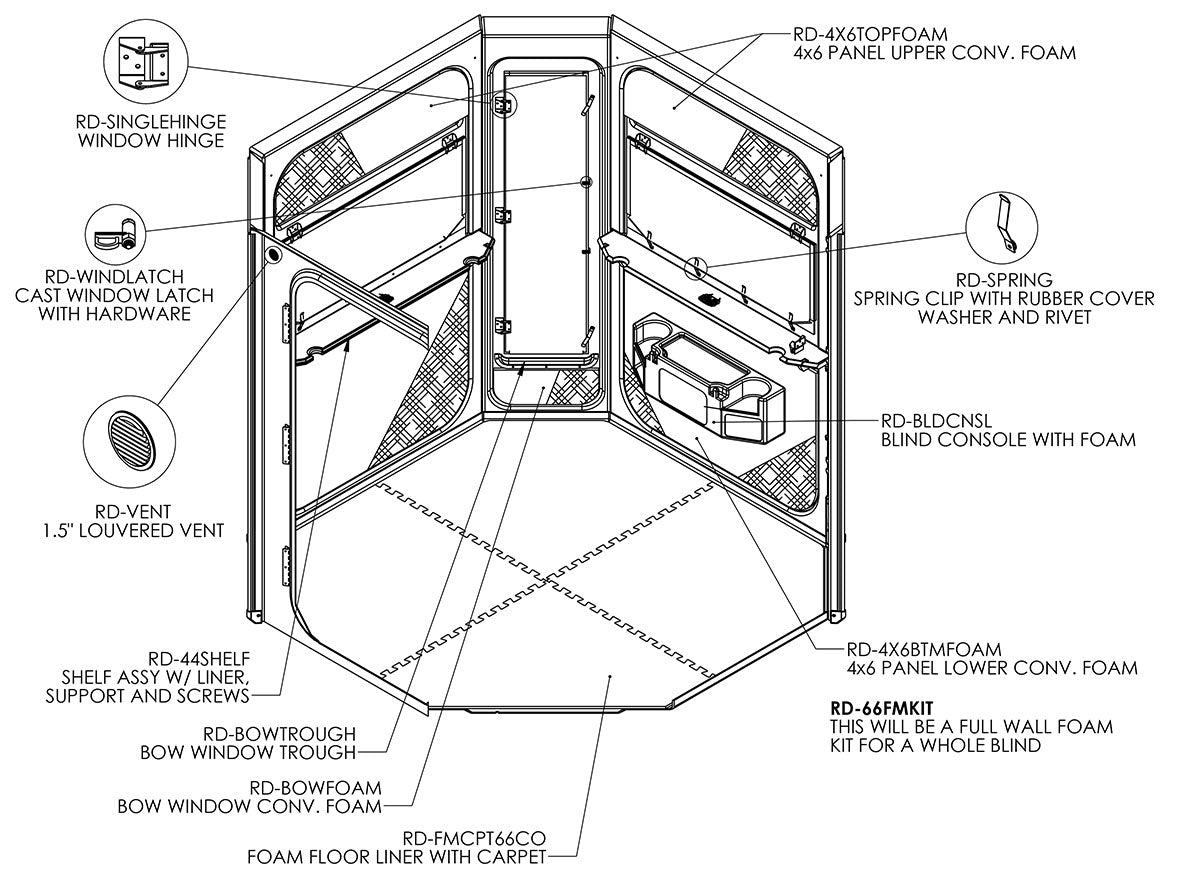 Select an official Redneck Blind replacement part for the Buck Palace Platinum 360° 6X6 Box Blind. If you can't find the Redneck Blind replacement parts needed or have questions, please fill out our replacement contact form.